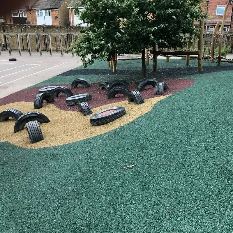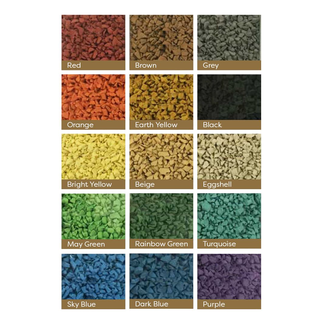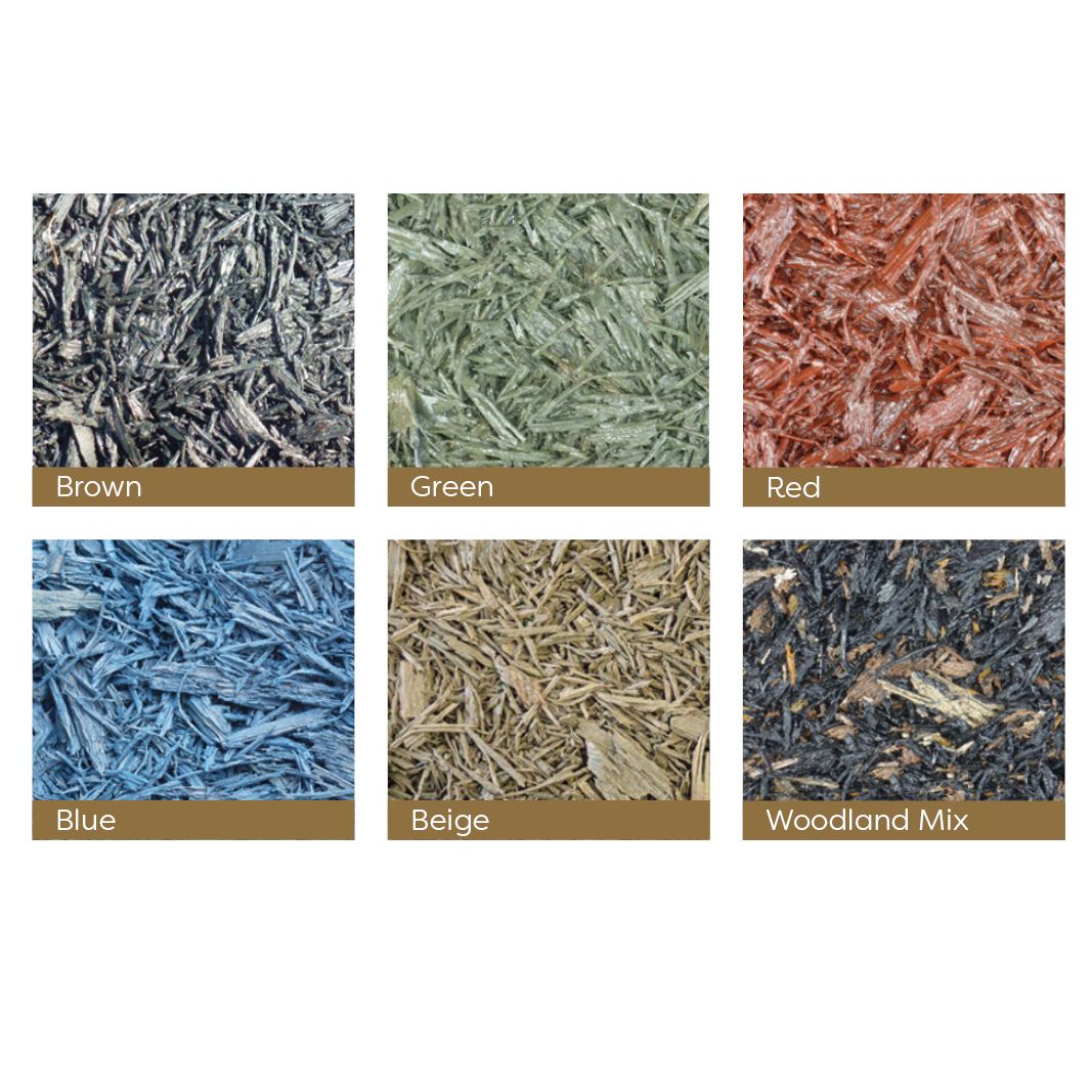 or paths. Rubber mulch is made from 100% recycled rubber which is shredded and graded. The product is tested to comply with EN1177 and is available in a range of natural colours.