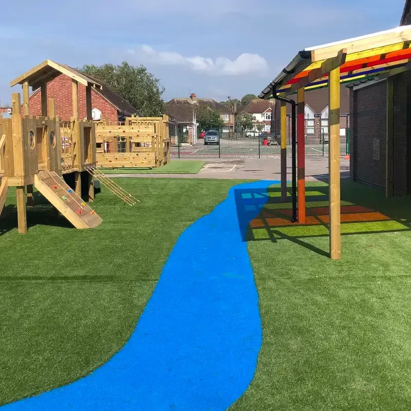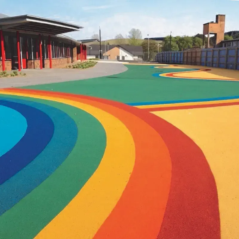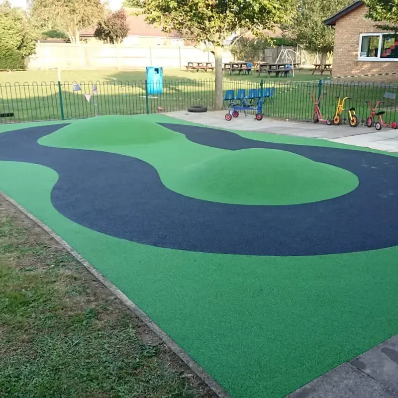 Wet Pour Rubber provides a safer surface that reduces the risk of injury when falling from height while playing. Our Wet Pour is installed in accordance with BSEN1177. Wet Pour is low maintenance and comes in a variety of colours. Numbers, letters and shapes can be added to the design of the surface for that added play value.